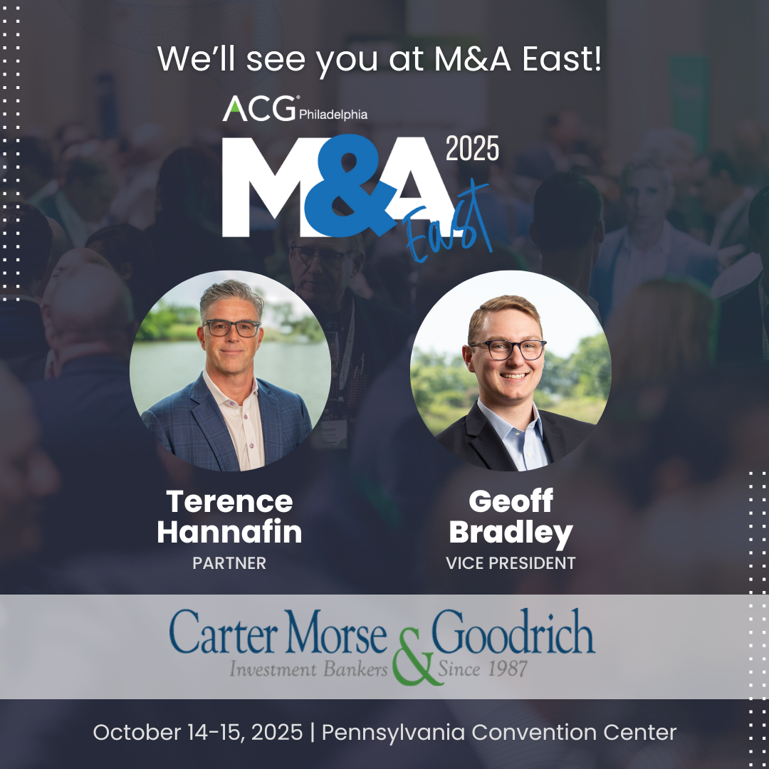 Carter Morse & Goodrich is pleased to share that Terence Hannafin and Geoff Bradley will both be attending the M&A East Conference in Philadelphia, hosted by The Association for Corporate Growth (“ACG”) from October 14 – October 15, 2025. We are excited for the opportunity to connect with fellow industry professionals. M&A East is the […]